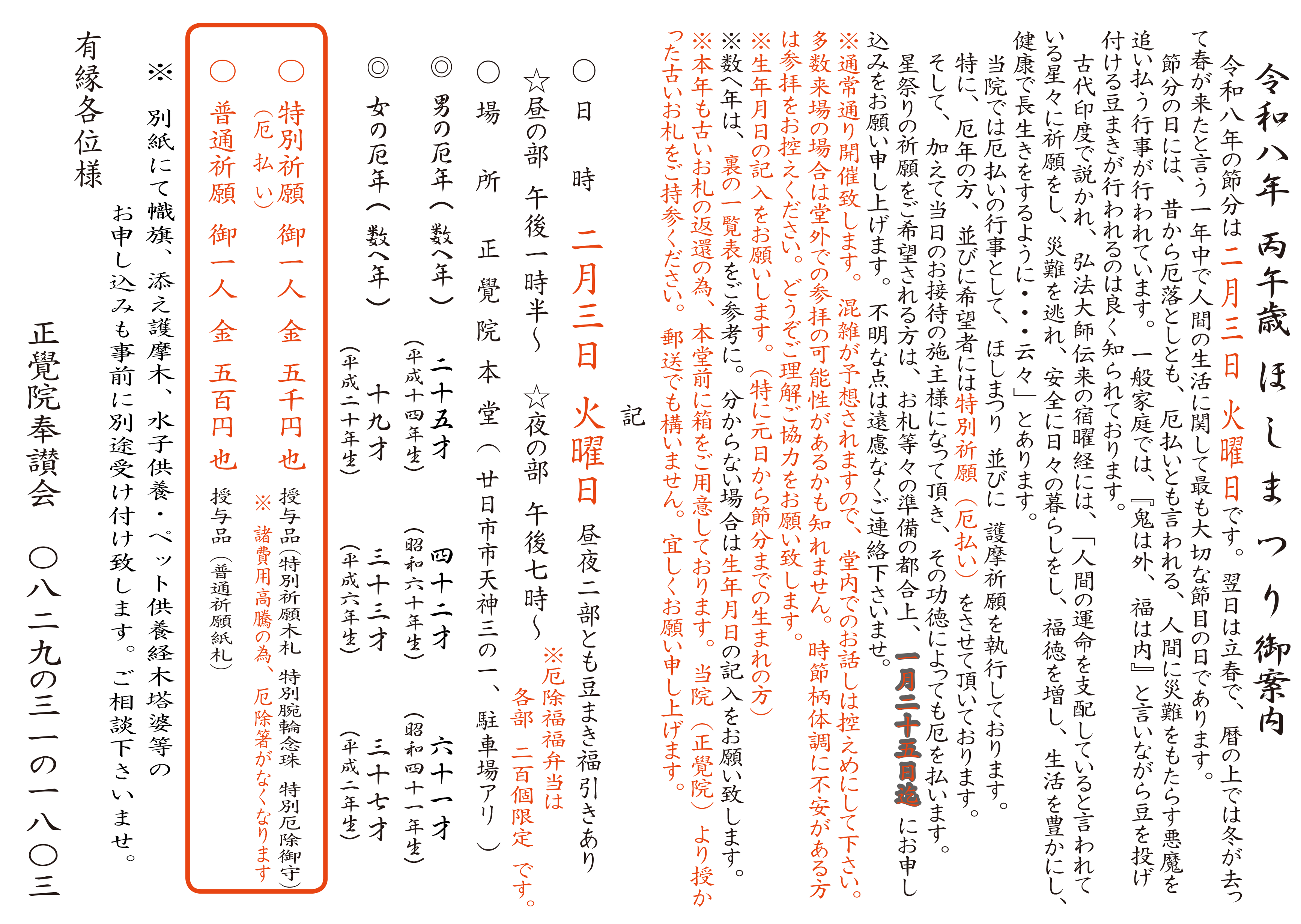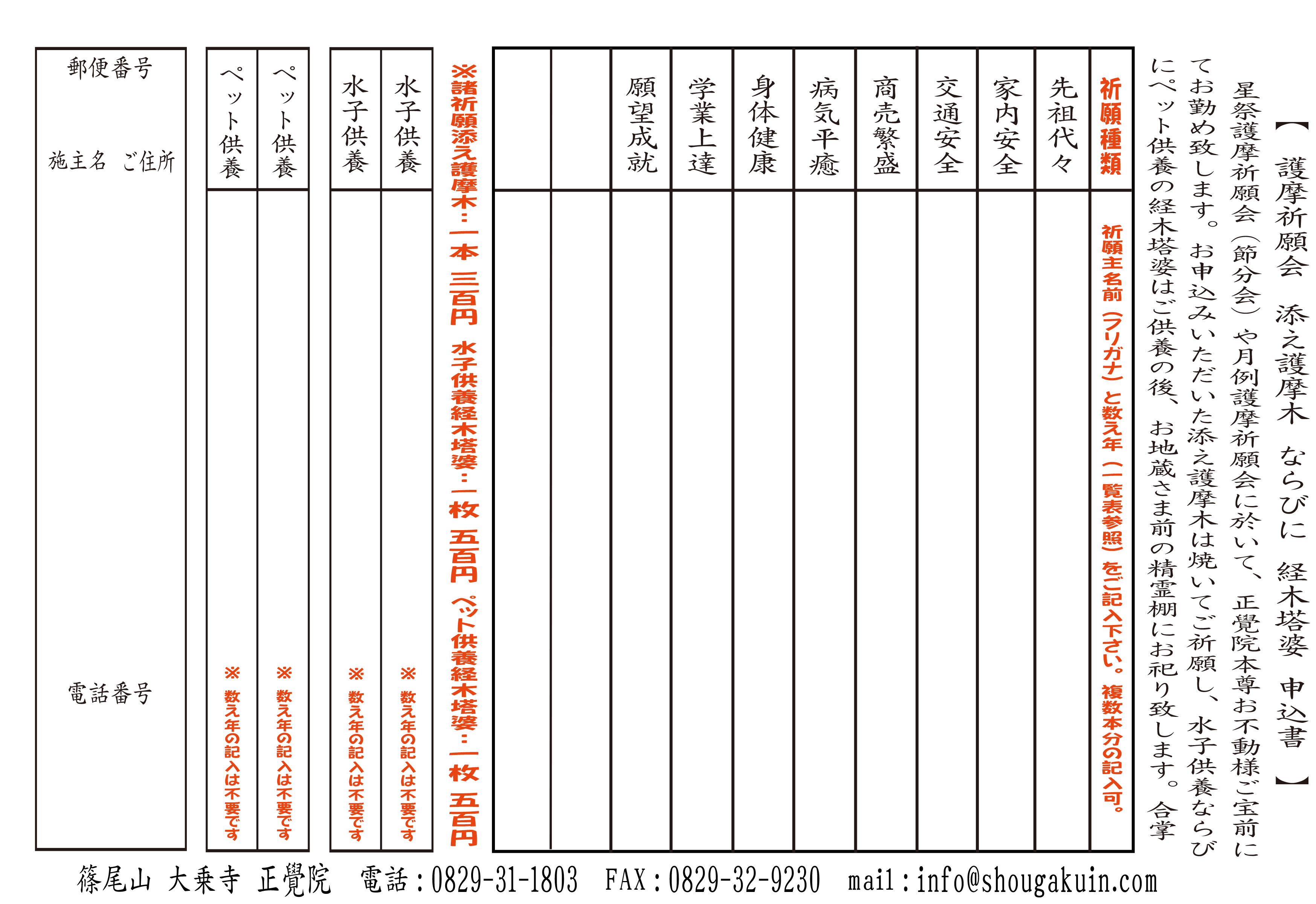 ※ 別紙にて添え護摩木、水子供養経木塔婆の申込みを受け付け致します。